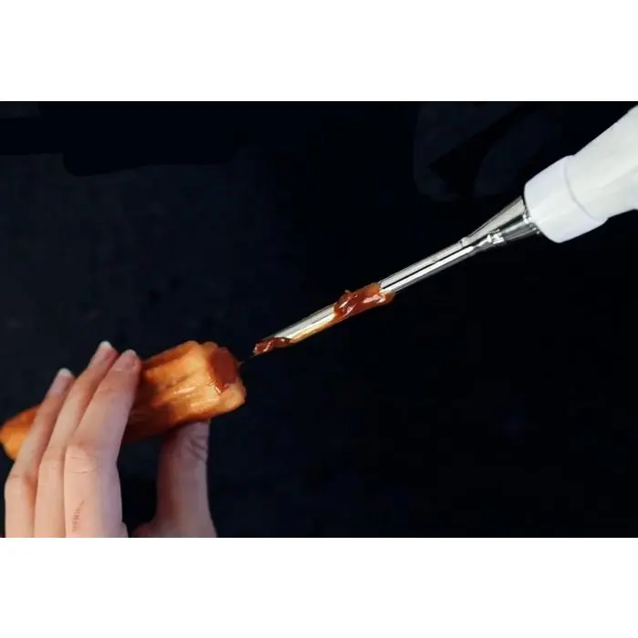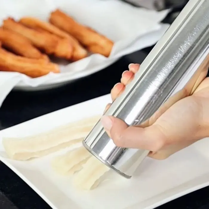 Disfrutá del sabor de los churros caseros recién hechos con esta churrera artesanal metálica, una herramienta resistente y funcional que te permite elaborar churros uniformes en pocos minutos.
