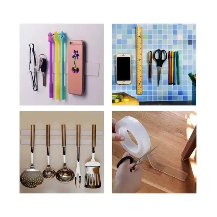 Ideal para decorar, organizar y fijar objetos como cuadros, fotos, alfombras, utensilios, llaves, celulares o tablets. No deja residuos al retirarla, y mantiene tus espacios ordenados sin dañar las superficies.