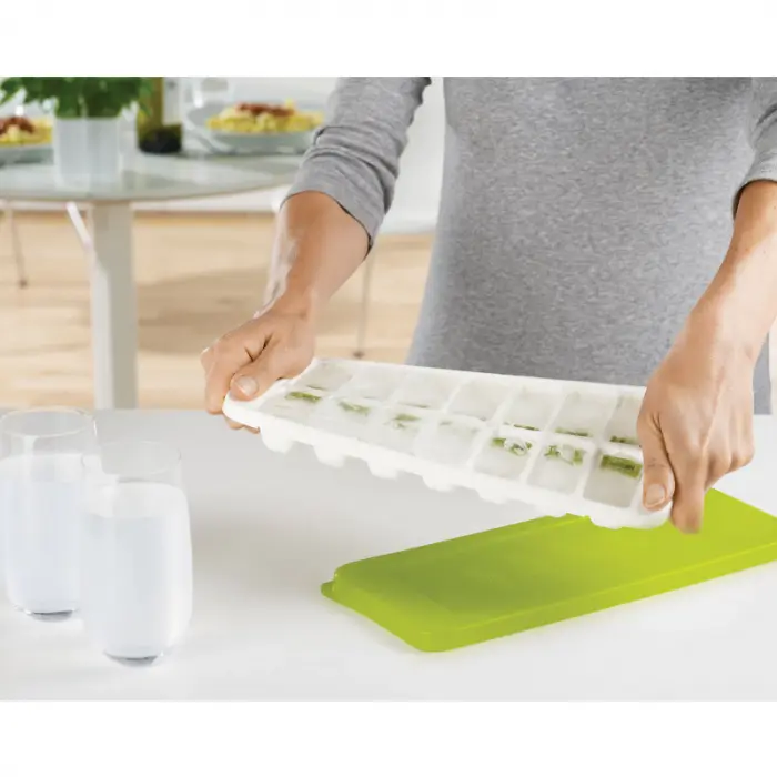 La Cubetera con Tapa y Sistema de Botón QuickSnap está diseñada para simplificar tu rutina y mantener tu freezer siempre ordenado.