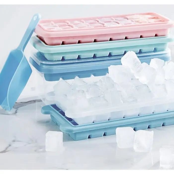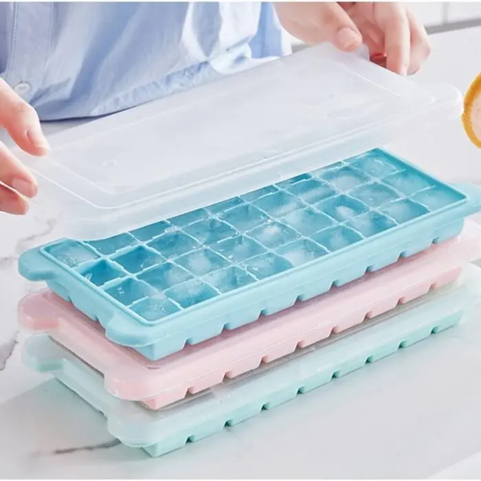 Su material flexible permite desmoldar fácilmente los cubitos sin romperlos, y su tapa protectora evita derrames y olores indeseados en el congelador.