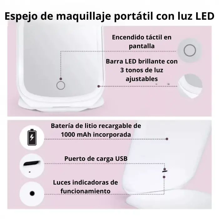 ✔️ Tres modos de luz: Luz fría, natural o cálida, para adaptar tu maquillaje y cuidado de piel a cualquier situación.