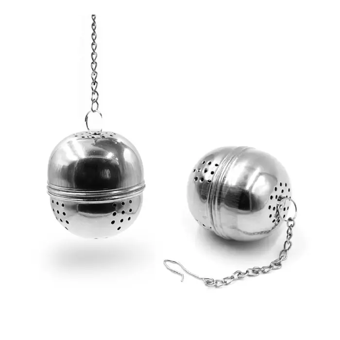 Este infusor redondo con cadena es perfecto para preparar té en hebras o infusiones naturales sin dejar residuos. Su diseño metálico resistente permite una óptima filtración, garantizando un sabor puro y una experiencia relajante en cada taza.
