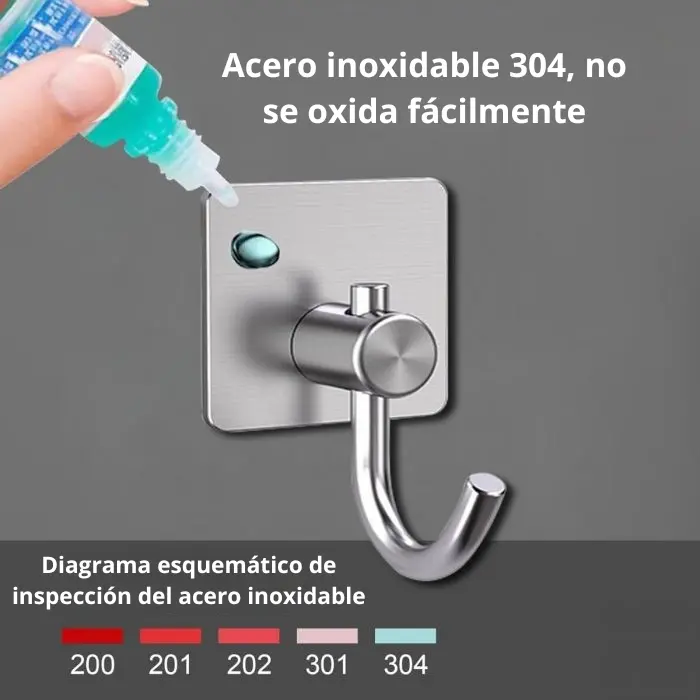 Fabricado en acero inoxidable de alta calidad, ofrece una excelente resistencia al uso diario y a la humedad, ideal para baños, cocinas o dormitorios. Su potente adhesivo permite una instalación rápida y firme sobre superficies lisas como cerámicos, vidrio, madera o metal.