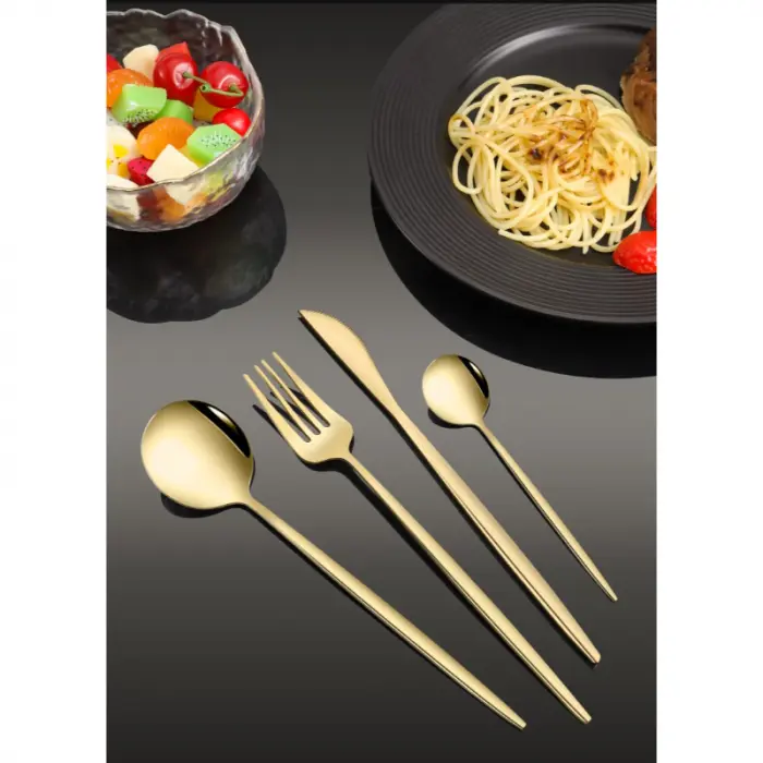 Transformá cada comida en una experiencia especial con este juego de cubiertos dorados fabricados en acero inoxidable de alta calidad. Su acabado dorado con brillo uniforme combina resistencia, sofisticación y durabilidad, aportando un toque moderno y refinado a tu mesa.