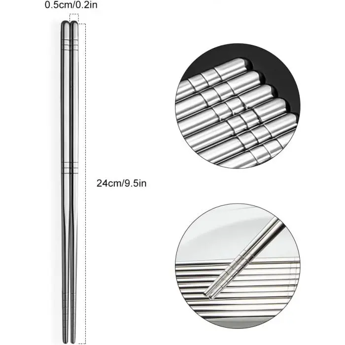Disfrutá tus platos orientales favoritos con estos palillos chinos de acero inoxidable, diseñados para ofrecer una experiencia cómoda, elegante y ecológica.