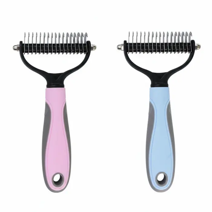 El peine saca nudos para mascotas está diseñado para eliminar enredos y pelo suelto sin lastimar ni irritar la piel. Su diseño ergonómico y sus púas metálicas lo convierten en una herramienta esencial para el cuidado diario de tu perro o gato.