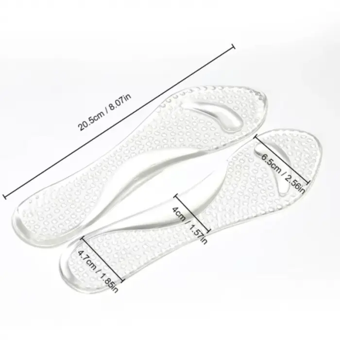 Diseñadas con gel de silicona flexible y duradero, estas plantillas proporcionan amortiguación y soporte ergonómico al arco del pie, ayudando a reducir el cansancio y la presión en jornadas largas.