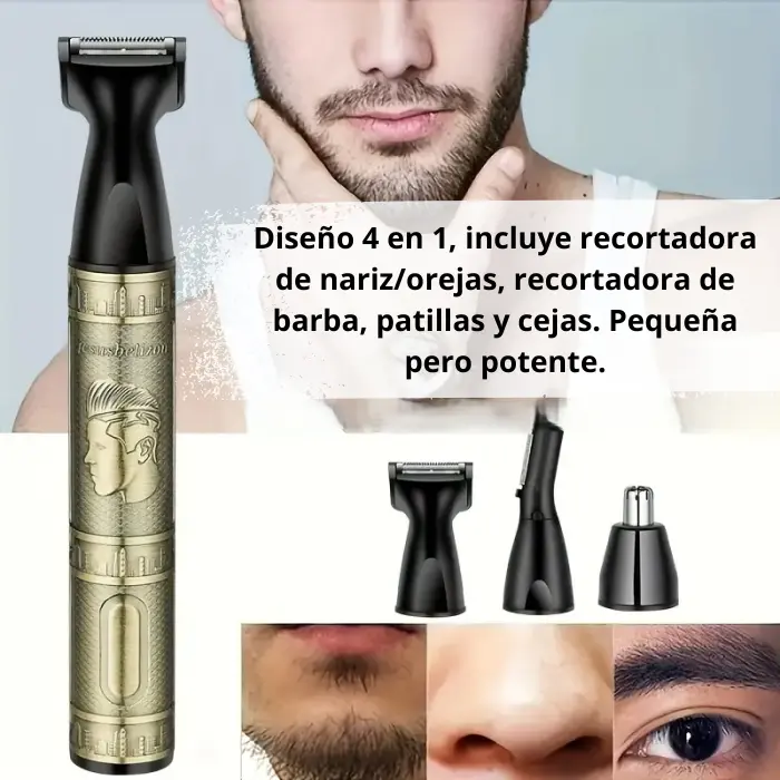 🩵 Versatilidad total: Incluye 3 cabezales intercambiables + 1 integrado, perfectos para cortar, rasurar o definir cada zona del rostro.
