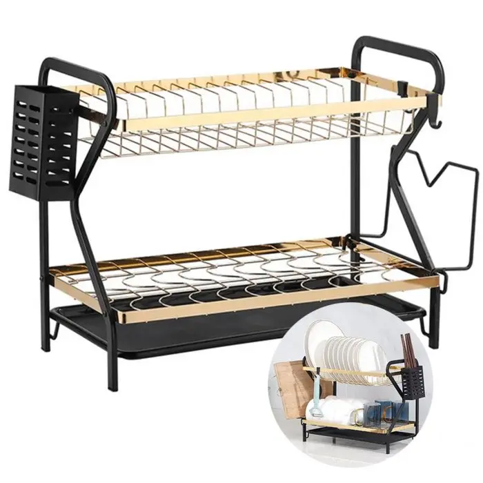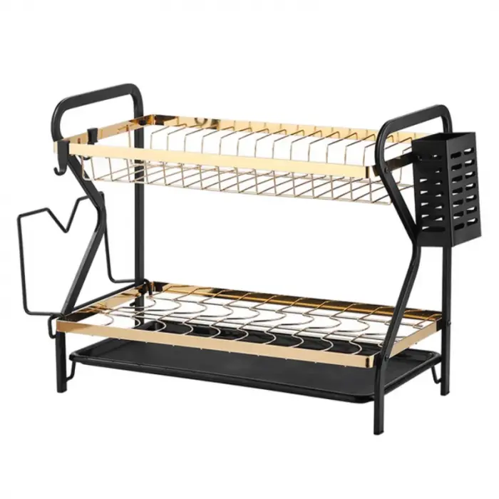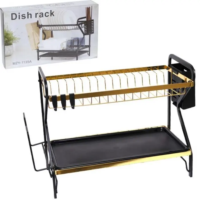 Organizá tu cocina con estilo con el Secaplatos de Lujo Emidica, un diseño sofisticado en negro y dorado que combina elegancia, durabilidad y practicidad. Su estructura de acero inoxidable de alta calidad garantiza una larga vida útil y resistencia a la humedad.