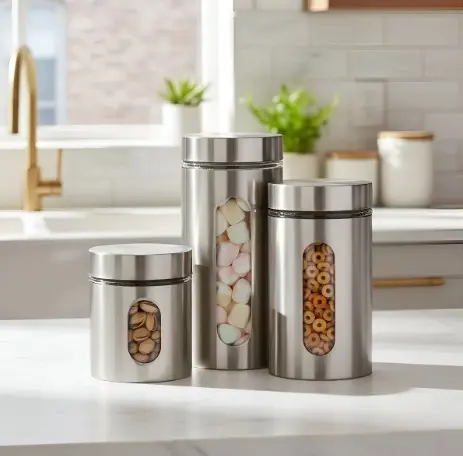 Este set x3 tarros herméticos para cocina es una solución funcional y elegante para mantener tus alimentos frescos y tu espacio perfectamente organizado. Fabricados en vidrio resistente con tapas de acero inoxidable, combinan durabilidad y estilo en cada uso.