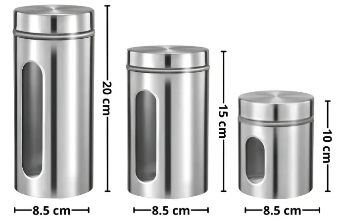 El cierre hermético ayuda a conservar la calidad de granos, pastas, galletas, especias y todo tipo de alimentos secos, evitando humedad, olores y contaminación. Sus tres medidas —10 cm, 15 cm y 20 cm— permiten adaptarse a diferentes necesidades de almacenamiento, optimizando espacio en alacenas, estanterías o mesadas.