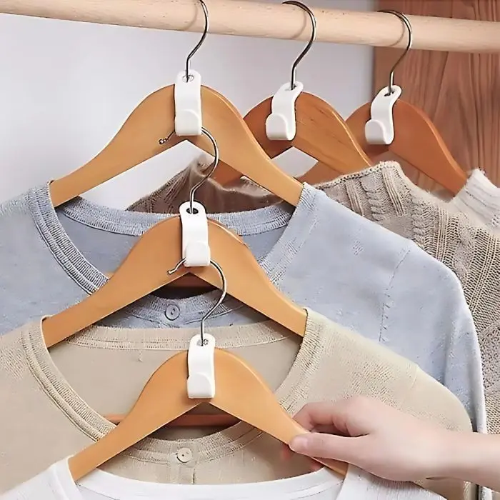 Estos ganchos multifunción son la solución perfecta para organizar tu ropa y maximizar el espacio en el placard. Permiten colgar una prenda debajo de otra, ideal para optimizar el almacenamiento sin arrugas ni desorden.