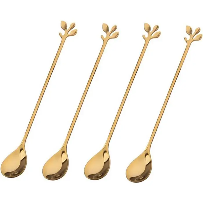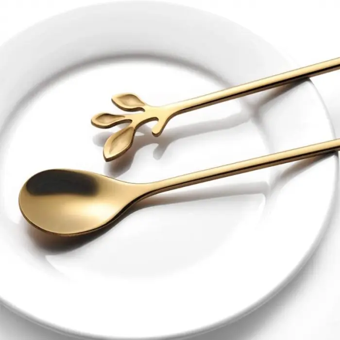 Estas cucharas de té destacan por su diseño original con mango en forma de rama, que aporta un estilo moderno y delicado a tu vajilla. Fabricadas en acero inoxidable de alta calidad con acabado dorado, son duraderas, cómodas y fáciles de limpiar.